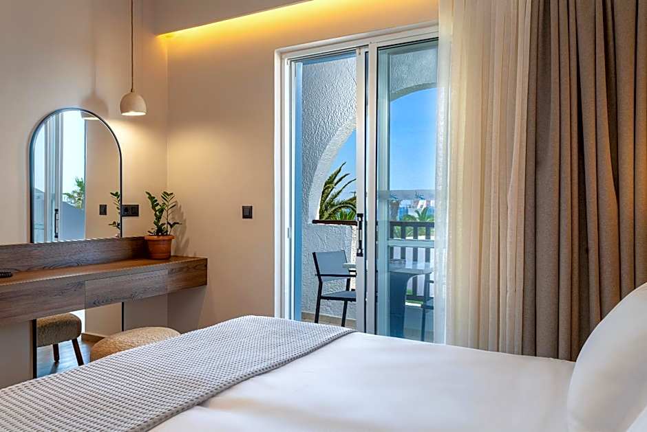 Offering a sofa, this room opens to a private balcony overlooking the Aegean Sea or the garden. Free WiFi, a satellite TV and mini-bar are offered. Air conditioning is available at extra charge.