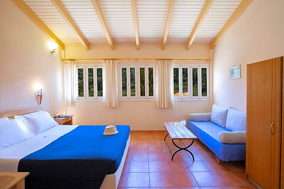 The hotel boasts a range of fantastic amenities, including free parking, a refreshing outdoor swimming pool, complimentary Wi-Fi, and comfortable air conditioning in every room. Take in the stunning mountain views from your private balcony or relax in the peaceful garden surroundings. Whether you're looking for a quiet getaway or a relaxing sun deck to unwind, Odyssey Hotel has everything you need for a comfortable stay.