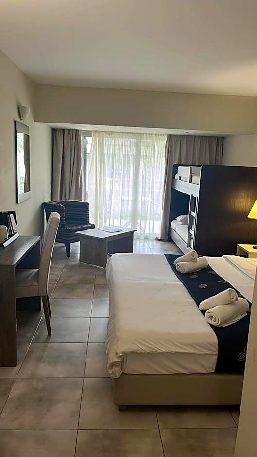 Sea views meet savory bites at Olympus, the on-site restaurant serving American and International dishes, just steps from the water. The beachfront bar invites sunset drinks, while a picnic area and a kid-friendly buffet keep mealtimes easy for families. Beach access comes with umbrellas and chairs, and the terrace plus garden spaces provide plenty of spots to linger as the tide rolls in.
