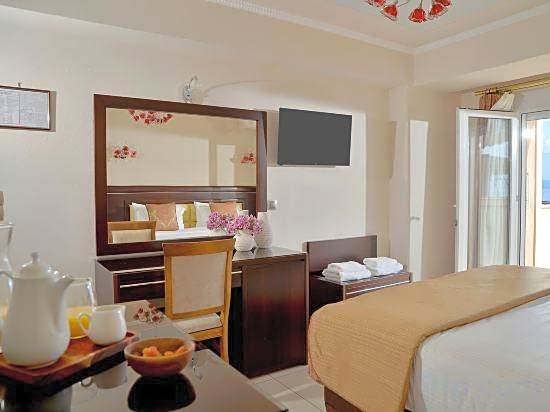 At Ilia Mare hotel, guests can enjoy their time by relaxing on the beach or private beach area. They can soak up the sun on the sun deck or terrace while enjoying the seaside ambiance. For dining options, guests can savor Greek, Mediterranean, and European cuisine at Pharos Restaurant located on-site, offering a cozy and romantic ambiance suitable for families. They can also take advantage of room service if they prefer private dining. With soundproof rooms and air conditioning, guests can have a peaceful and comfortable stay. Additionally, the hotel's 24-hour front desk ensures that guests' needs are promptly attended to during their stay.