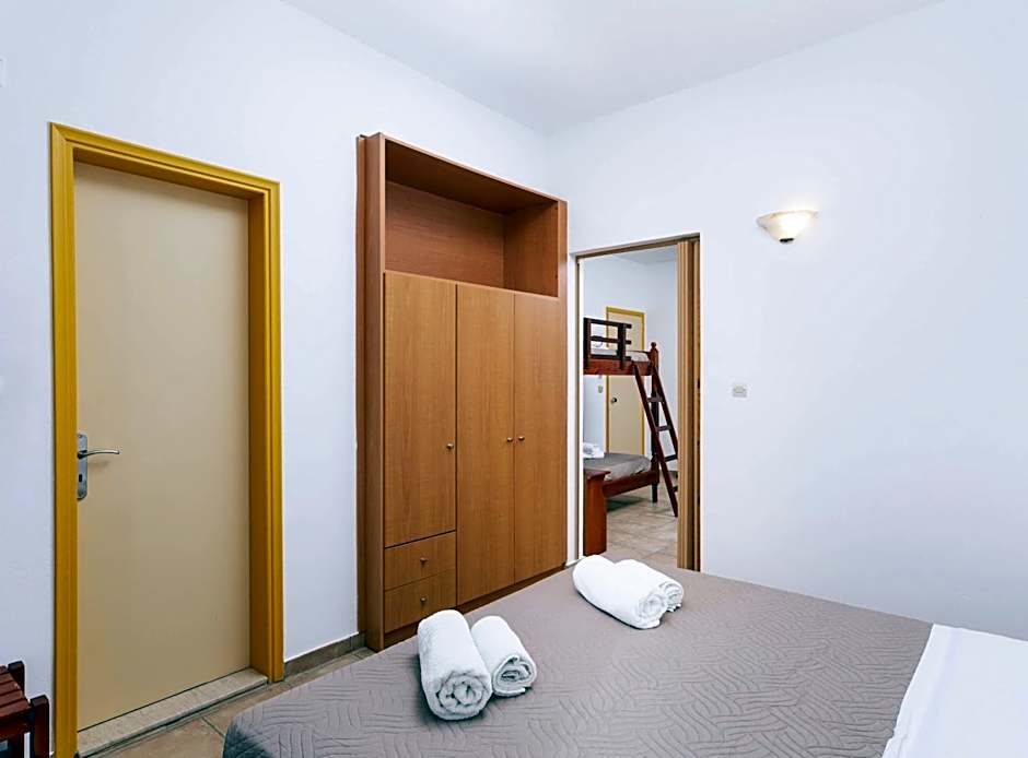 This air-conditioned quadruple room includes a flat-screen TV with satellite channels, a private bathroom as well as a terrace with garden views.