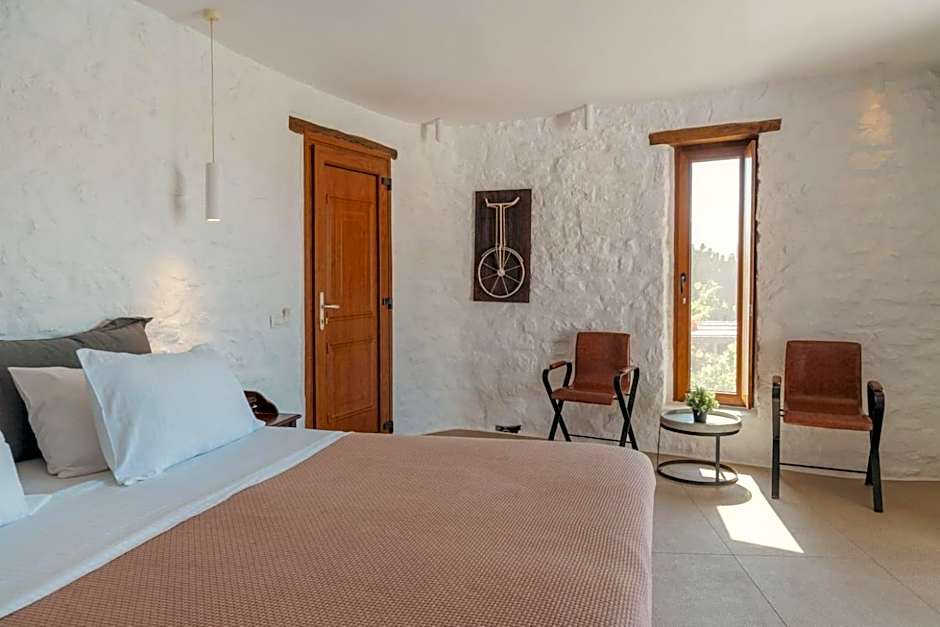 Offering a balcony with unlimited sea views, this room is fitted with stone walls and wood beamed ceilings.