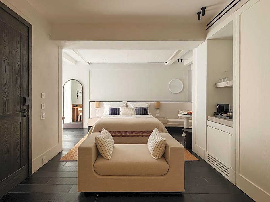 Take a dip with a view at a seasonal rooftop pool, an adults-only oasis perched above the Mykonos scene. An outdoor pool is also available free of charge, and a sun deck awaits for easy, sun-kissed lounging between dips and discoveries around the island.