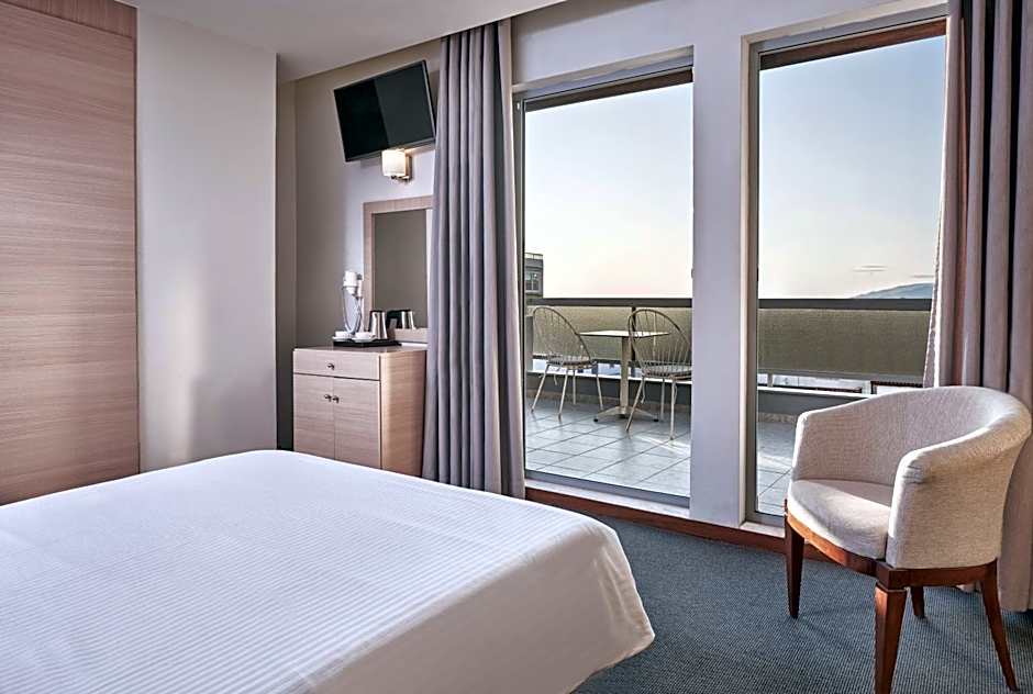 Méditerranée offers a room for every traveler, whether journeying solo or with a crew. The lineup includes a Single Room with City View, a standard Single Room, a Quadruple Room, a Triple Room with Panoramic View, and an Apartment 2 Room, alongside a mix of Standard, Superior, and Family options. Some rooms feature a bathtub, ideal for unwinding after a day of exploring Pátra.