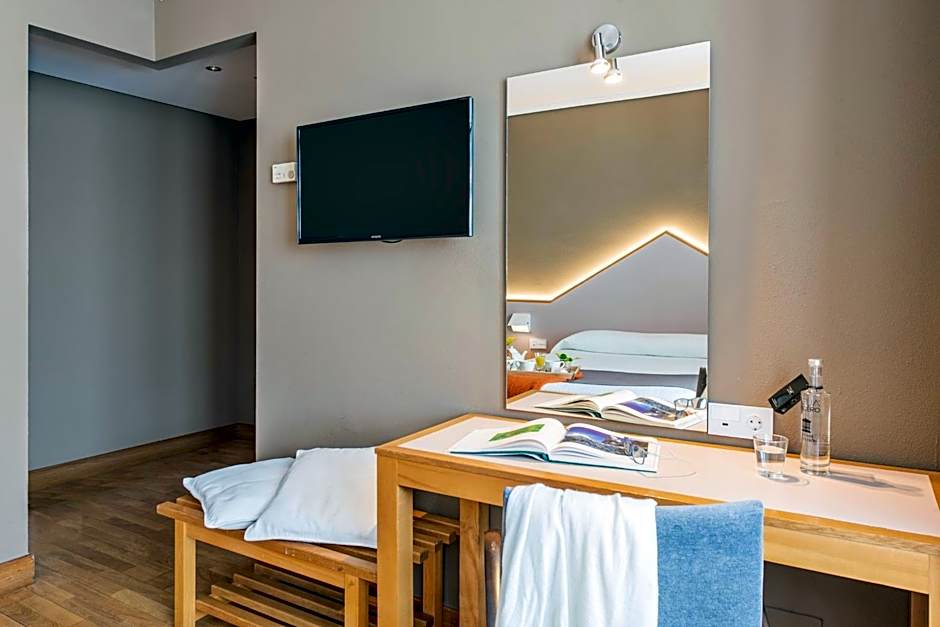Spacious room with a sitting area and balcony with direct view to the Aegean Sea. Features LCD TV, air conditioning and mini-bar.