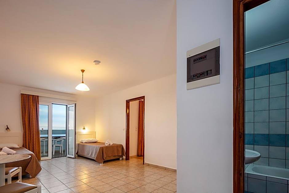 Quiet moments come easy with garden-facing spaces that open onto a terrace and sun deck, and free beach umbrellas and chairs to borrow on sunny days. On-site parking is free, and rooms offer air conditioning, soundproofing, a bathtub, free toiletries, and a balcony, ensuring comfort after a day of wandering the streets of Stalís.