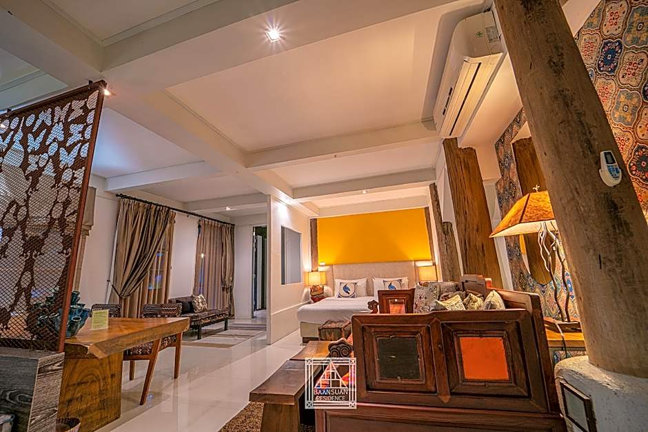 Room options include Standard, Economy, Superior, Family, Suite, and Apartments, with views ranging from sea and partial sea to garden and mountain. These accommodations are designed to suit different group sizes and preferences.