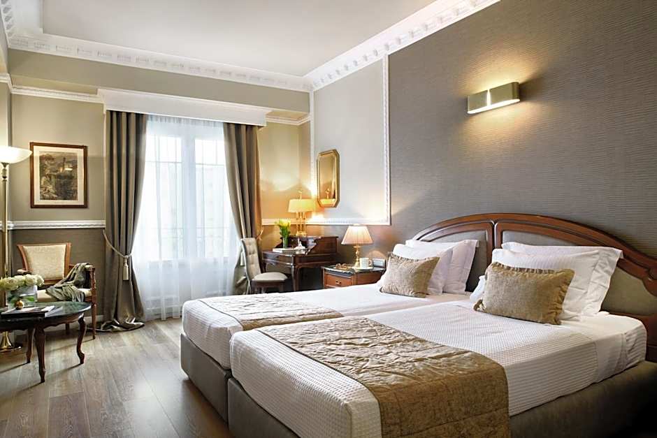 Located on the interior side of the hotel, this classically decorated room features draped curtains and elegant wallpapers. Facilities include a satellite TV, free WiFi, air conditioning and cosmetics.