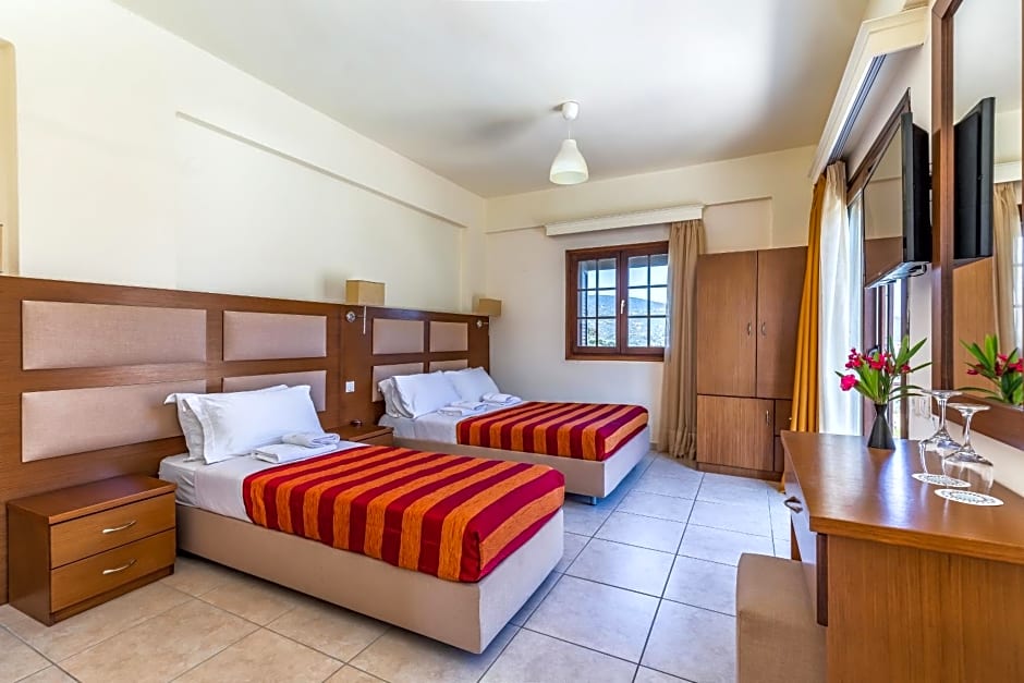Τhe maximum number of occupants is 3 adults with 1 infant, or 2 adults and 2 children up to 7 years old) and 1 infant (in a baby cot). Please see the hotel policies for extra bed charges.