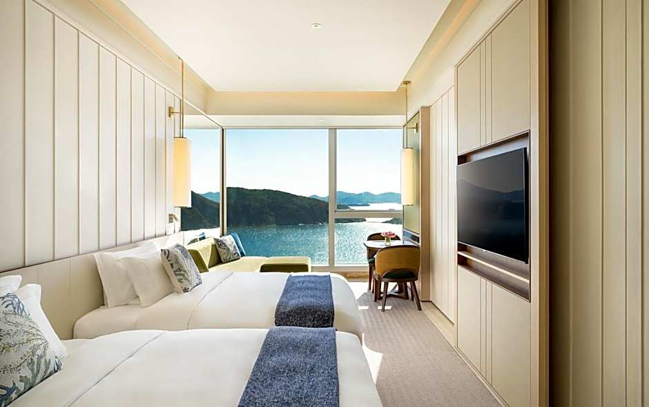 Providing free toiletries and bathrobes, this twin room includes a private bathroom with a walk-in shower, a hairdryer and slippers. The spacious air-conditioned twin room provides a flat-screen TV with cable channels, a mini-bar, a tea and coffee maker, a wardrobe as well as sea views. The unit offers 2 beds.