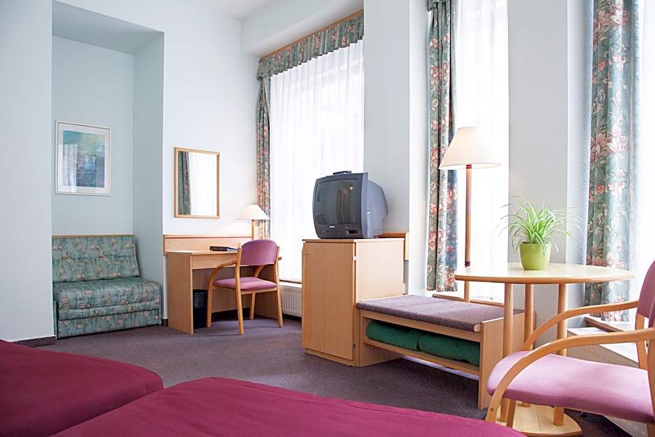 Facing the street or the inner courtyard, these spacious twin or double rooms with air-conditioning feature satellite TV and a bathroom with a shower.