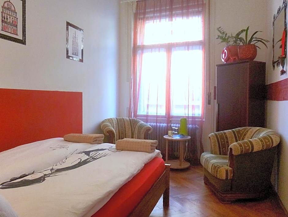 The double room provides a washing machine, a tea and coffee maker, as well as a shared bathroom featuring a shower and a hairdryer. The fully equipped kitchen features a stovetop, a refrigerator, kitchenware and an oven. The double room is furnished with a desk and a seating area and features a dining area, a wardrobe and city views. The unit offers 1 bed.