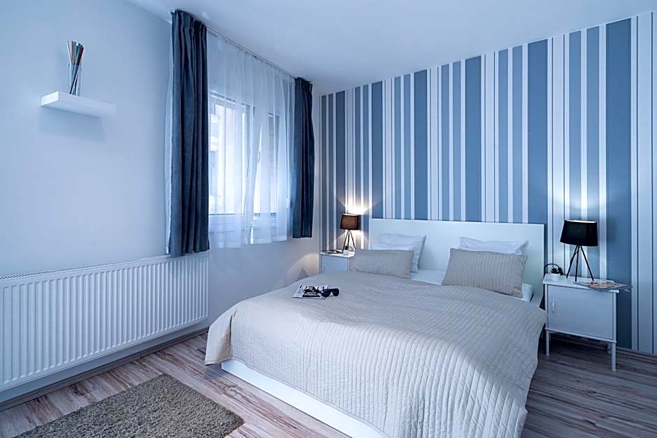 Indulge in the luxury of Vagabond Corvin's various room options, ranging from cozy studios to spacious two-bedroom apartments. Sip your morning coffee while enjoying the mesmerizing city views from the Superior Studio or wake up to the sea breeze in the Superior Studio with a Sea View. Each room is elegantly designed and equipped with modern amenities to ensure a comfortable stay. Whether you're a solo traveler, a couple on a romantic getaway, or a small family exploring Budapest, there's a perfect room for everyone at Vagabond Corvin.