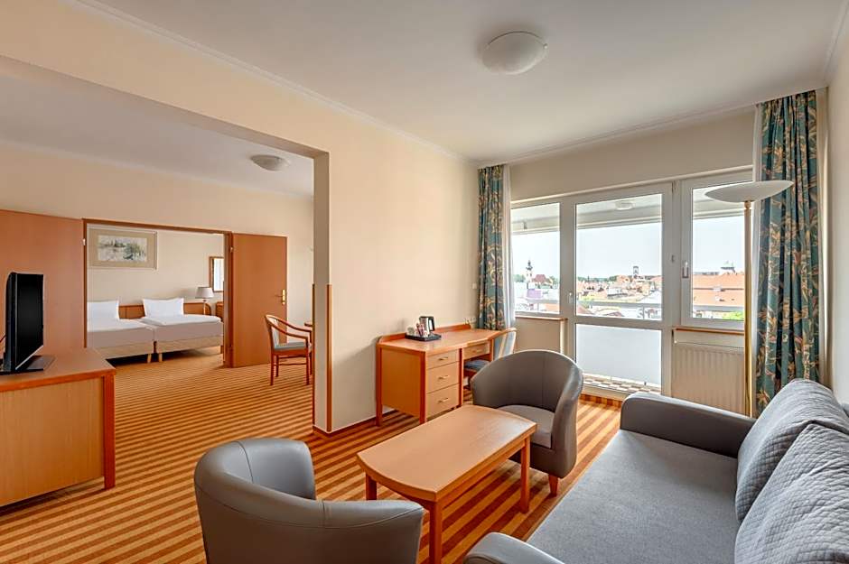 This air-conditioned suite consists of 1 living room, 1 separate bedroom and 1 bathroom with a bath. The suite provides a tea and coffee maker, a seating area, a wardrobe, a flat-screen TV with cable channels, as well as city views. The unit offers 2 beds.