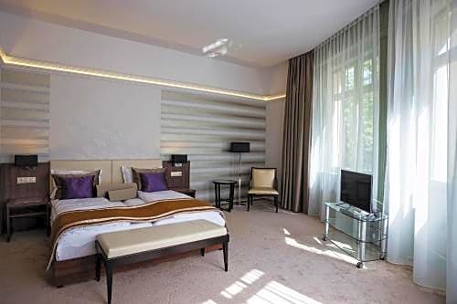 These stylish rooms provide views of the Hagymatikum Thermal Bath, the garden or the street. The units have air conditioning and satellite TV. The bathrooms come with a walk-in shower.