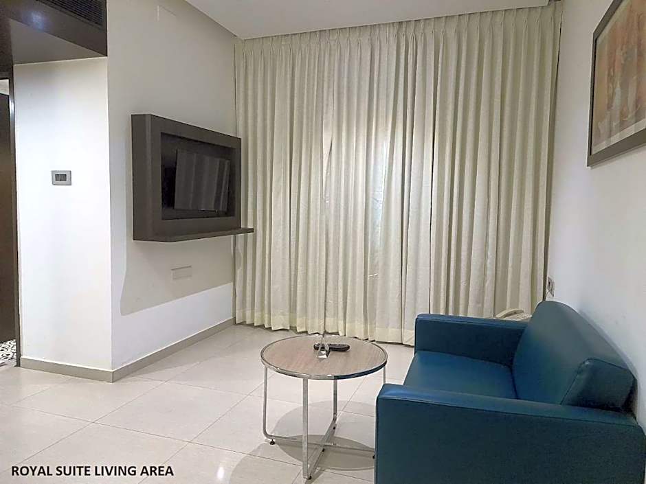 Room options span a range of styles and sizes. A Deluxe Double Room covers 258 square feet and accommodates 2 adults and 1 child with a double bed. Royal Suite configurations include a 313-square-foot option with two single beds, a 451-square-foot Royal Suite with a twin bed, and a 452-square-foot Royal Suite Double Room, offering several premium choices for different travel moods. An Executive option at about 280 square feet adds another comfortable variation to consider.