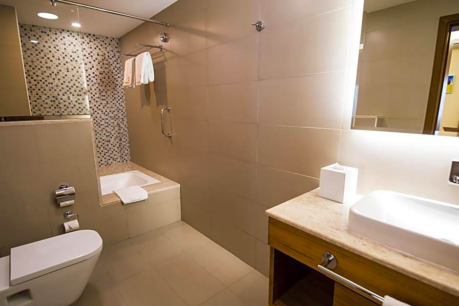 The air-conditioned suite features a flat-screen TV with satellite channels, a mini-bar, a tea and coffee maker and a seating area. The unit has 1 bed.