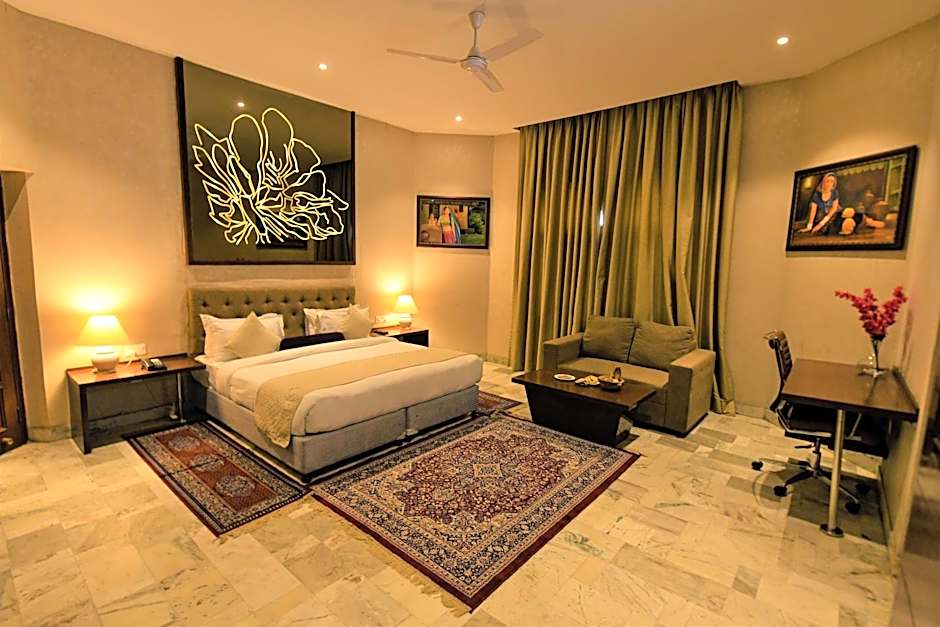 Stardom Resort Jaipur offers Deluxe Rooms, which are double occupancy rooms with a size of 355 sqft. Smoking is not allowed in these rooms. The rooms have a King size bed and can accommodate up to 3 adults, with no provision for children.
