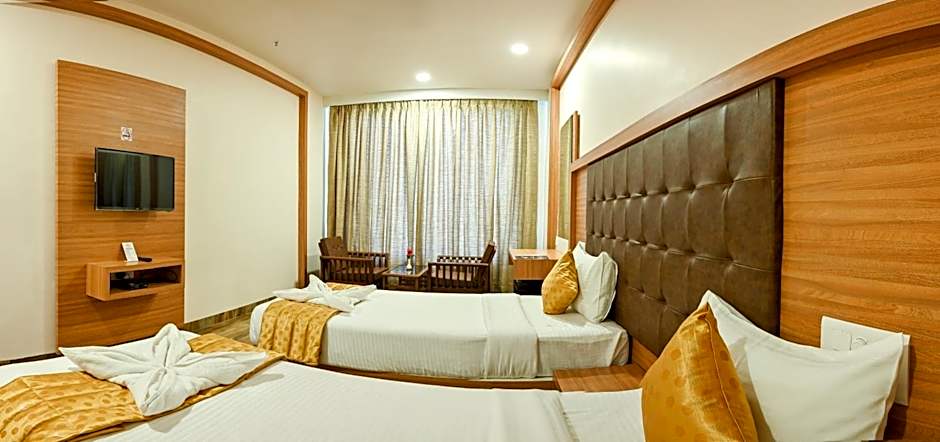 Hotel Laxmi Empire offers Deluxe King rooms with one double bed, Deluxe Twin rooms with two twin beds, and Deluxe Suites with one sofa bed and one double bed. All rooms have a size of 312 sqft, accommodate up to 3 adults and 1 child, and do not allow smoking.