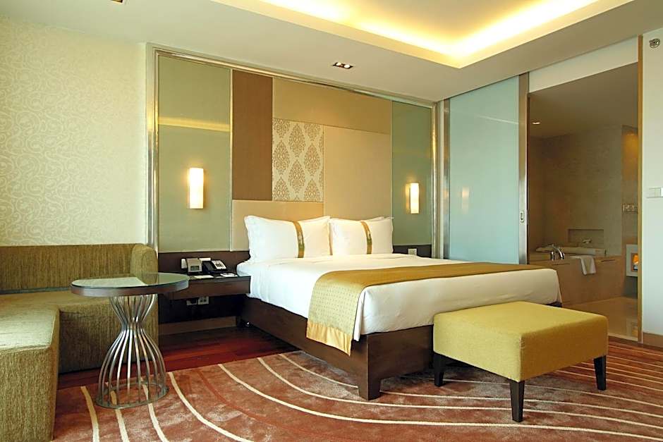 The Holiday Inn Mumbai International Airport offers a variety of room types. They have Superior Twin Rooms and Superior King Rooms, both of which are non-smoking. These rooms can accommodate 2 adults and 1 child and have bed sizes ranging from twin to king. Additionally, they offer an Executive Twin Room with evening cocktails and airport transfer, a Deluxe King Room with bathtub and evening cocktails, an Executive Room with evening cocktails and airport transfer, and a Suite with bathtub and airport transfer, all of which are non-smoking.