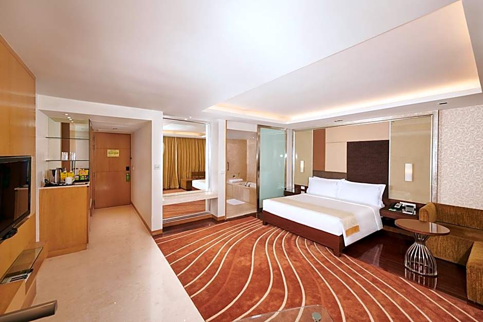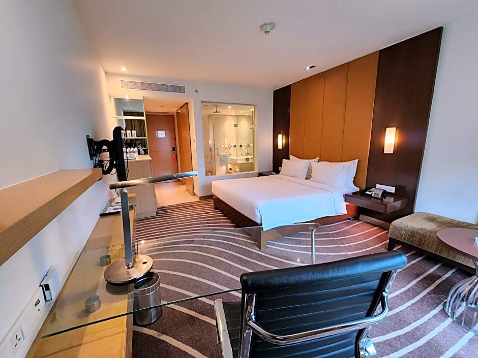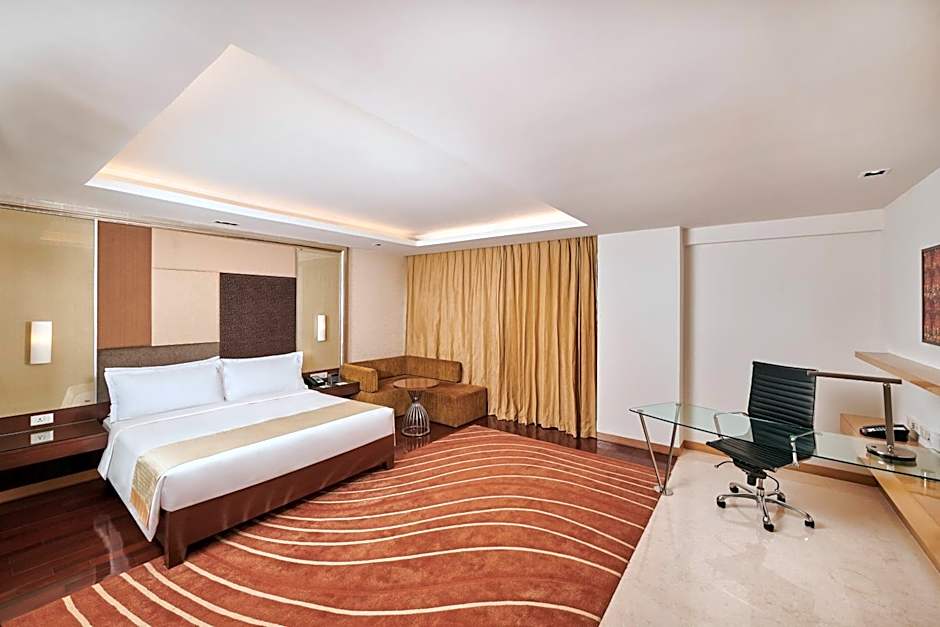 Modern air-conditioned room with an iPod dock, a flat-screen satellite TV and a private bathroom with a rain shower. Each room has a small sofa or seating area. Roll-away beds are available on chargeable basis. (See Policies). Outside food is not allowed inside the hotel premises.