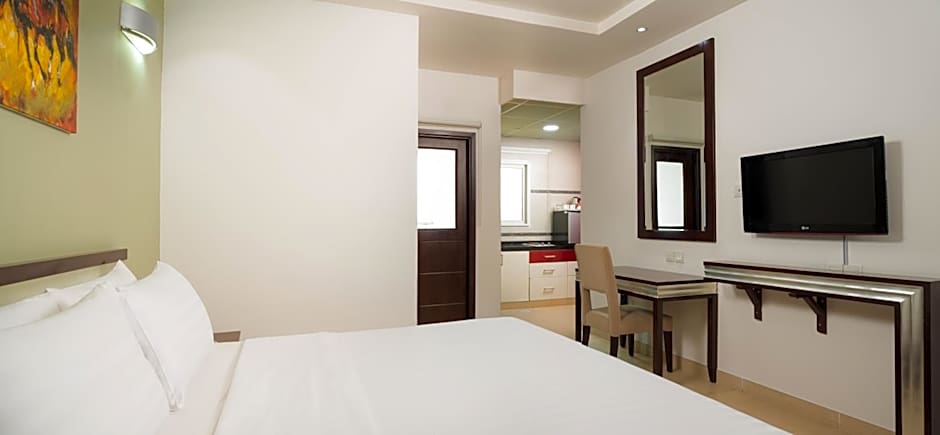 This suite has air conditioning, electric kettle and flat-screen TV.