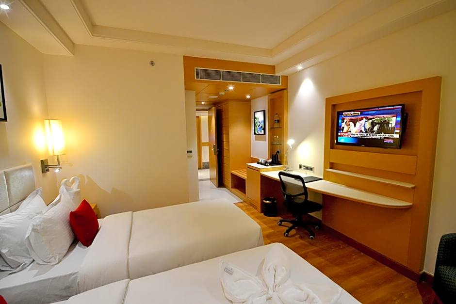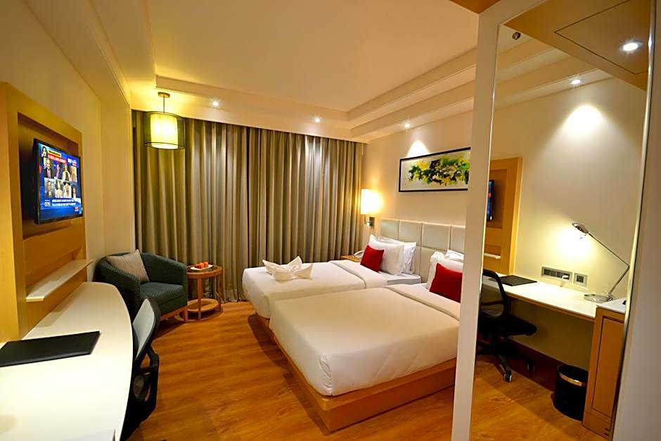 The Pearltree Hotels And Resorts offers a range of room options including Executive King, Club Twin, Club King, and Executive Twin rooms. These rooms can accommodate 2 adults and 1 child and have bed configurations of either a double or twin beds. All rooms have a room size of either 301 or 355 sqft and do not allow smoking.