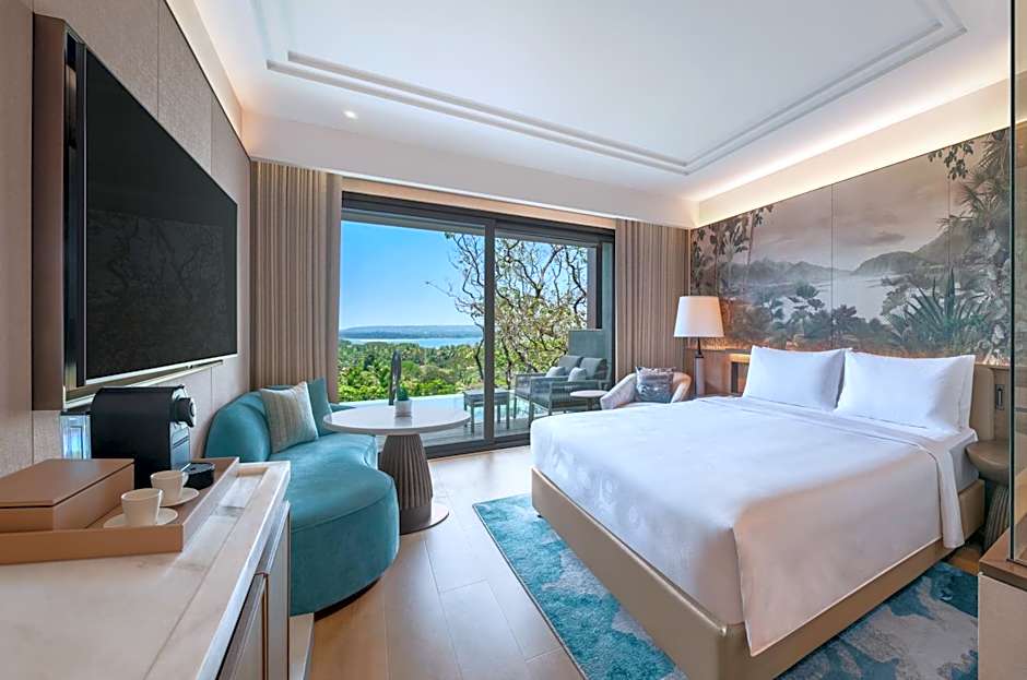 The hotel offers a variety of room types including Luxury King Room with Balcony and Bay View, Luxury King Room with Balcony and Courtyard View, Luxury Twin Room with Balcony and Courtyard View, Luxury Tropical King Room with Balcony and Forest View, and Luxury Tropical Twin Room with Balcony and Forest View. All rooms have a size of 377 sqft and do not allow smoking. The rooms can accommodate up to 3 adults and 1 child, with bed options of 1 King size bed or 2 Twin beds.