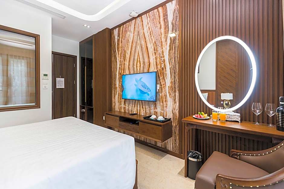 For guests who prefer a smaller room, there is a deluxe double room with a size of 237 sqft. This room can accommodate 2 adults and 2 children and smoking is not allowed. It is furnished with a queen size bed.