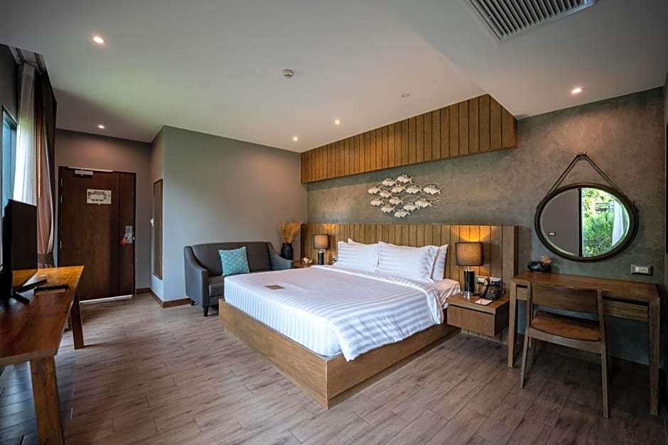 This villa features views of the ocean, river, and village. It features a small kitchen, an air-conditioned bedroom with an private bathroom. Guests enjoy a lounge bed in the living area and an outdoor wooden deck.