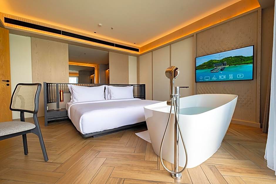 The pool with a view is the standout feature of this villa. This villa comes with 1 living room, 1 separate bedroom and 1 bathroom with a walk-in shower and free toiletries. The air-conditioned villa features a flat-screen TV with streaming services, soundproof walls, a mini-bar, a tea and coffee maker as well as sea views. The unit has 2 beds.