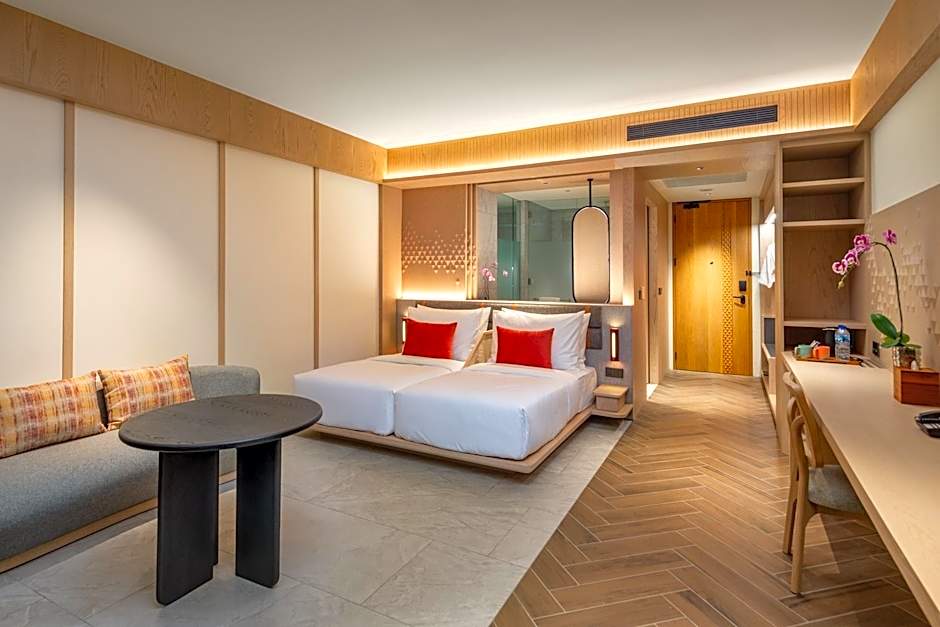 Dining options add flavor to the stay with Layar Restaurant, a family-friendly, modern space offering a diverse menu that spans American, Chinese, French, Indonesian, Mediterranean, pizza, seafood, local, Asian, international, and European flavors. For a different vibe, The Kliff Bistro brings a modern, romantic setting with Italian fare that’s perfect for an evening feast. Pools provide a stylish contrast to the dining scene: two adults-only infinity pools with views and a kids-only pool with a plunge, all set against an inviting all-season outdoor backdrop.