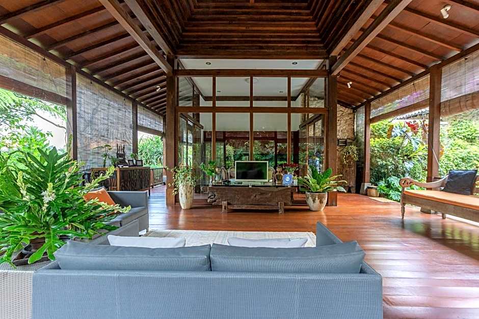The villa houses a spacious living area equipped with a flat-screen satellite TV and seating area overlooking the pool and garden. Balinese themed bedrooms are well-fitted with a wardrobe, seating area and private bathroom with shower facilities. It also has a well-equipped kitchen with dining area in the patio by the pool.