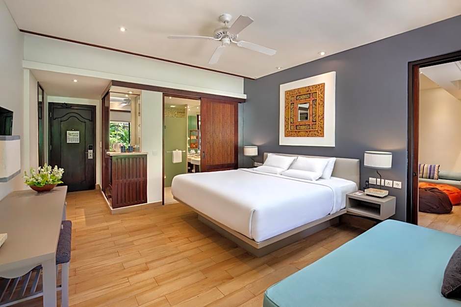 Featuring coconut wood furnishings, this air-conditioned room is equipped with a satellite TV, coffee/tea maker and a fridge. Guests can relax on the private balcony overlooking the pool. Private bathroom has rainshower and free toiletries.