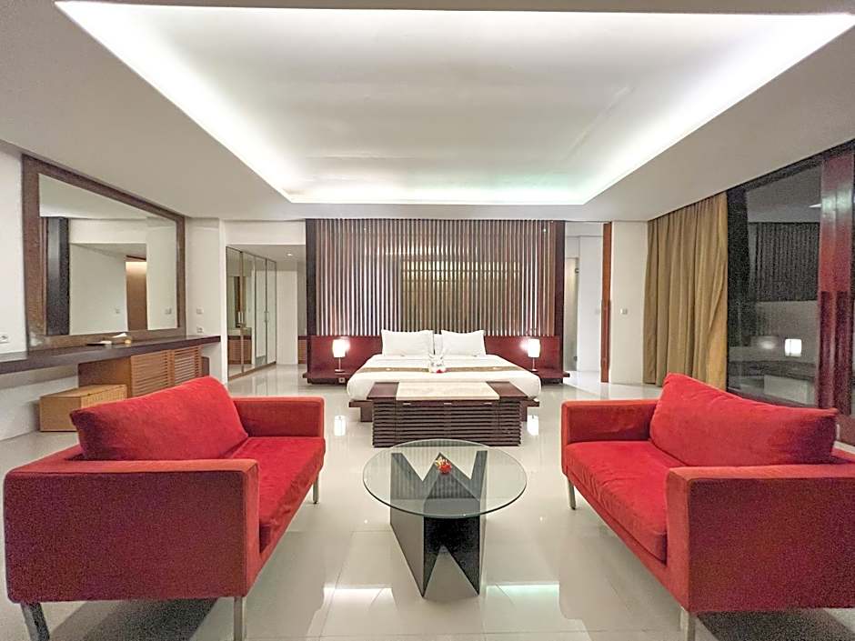 An air-conditioned room equipped with a spa bath, a mini-bar and a comfortable seating area.