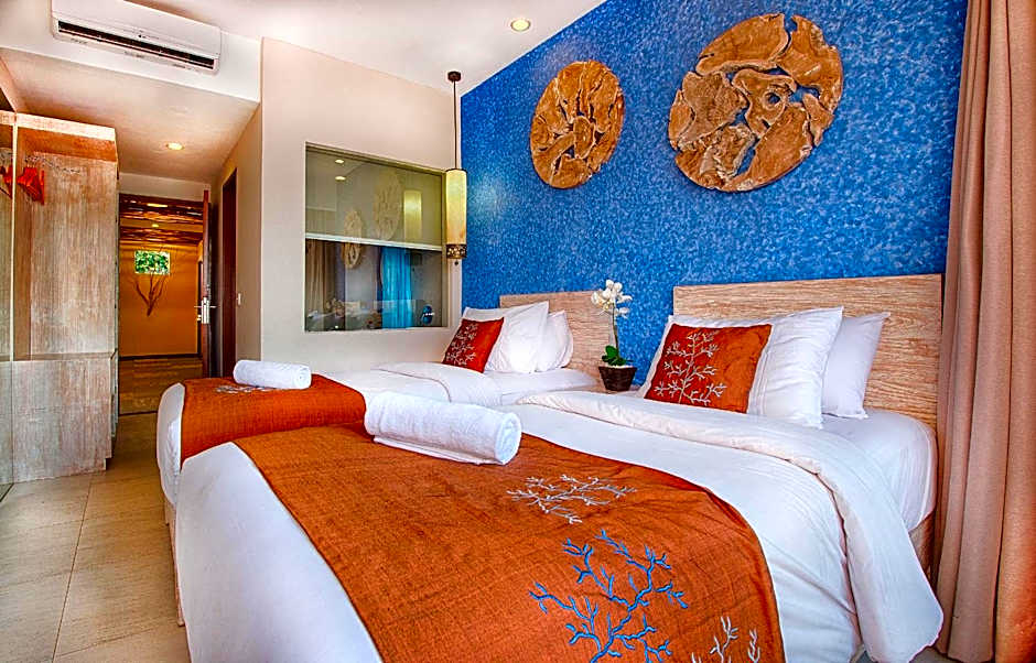 Natya Hotel Gili Trawangan offers Deluxe Double or Twin Rooms and Superior Double or Twin Rooms. Both room types can accommodate 2 adults, feature a King size bed, and also have Twin beds available. Smoking is not allowed in these rooms. The Deluxe room is larger at 269 sqft compared to the Superior room at 215 sqft.