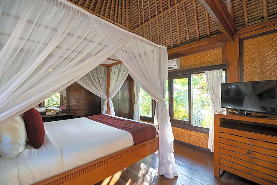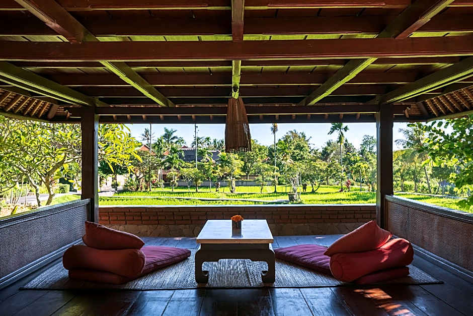 Designed in Traditional Balinese architecture, this villa-style unit offers an open-plan living room and to detached bedrooms. There is a private pool, private entrance and a TV. The air-conditioned unit offers hot and cold running water, mosquito nets, an outdoor daybed and mini-bar. Free WIFI is provided and there is a private terrace. The bathroom is fitted with bathtub and shower and has views of the rice fields.