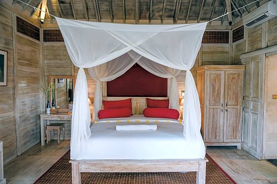 The hotel offers a variety of villa options. There are one-bedroom villas available in different categories such as standard, superior, suite, deluxe, honeymoon package, and Nyepi package. These villas accommodate 2 adults and may have different bed sizes including king, queen, and double beds. The hotel also offers a two-bedroom family villa which can accommodate 4 adults and 2 children. All of the rooms are non-smoking.
