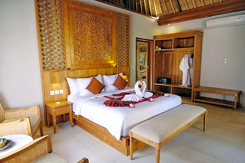 The on-site restaurant, Puri Andong Villa Kitchen, offers traditional Indonesian cuisine for guests to enjoy.