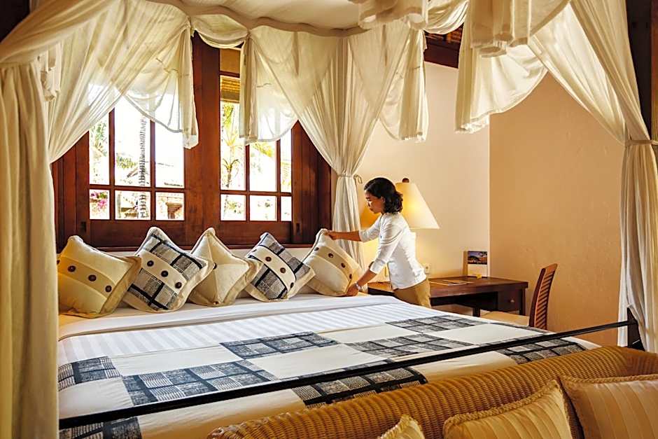 The Oberoi Beach Resort boasts a splendid mix of activities and tools for the ultimate getaway. Take a stroll along the private beach, savor delectable dishes at the on-site restaurant, or simply sip cocktails from the bar as you bask in the sun. And for families, the resort offers babysitting services as well as kid-friendly meals, ensuring that everyone feels right at home. With free Wi-Fi and 24-hour front desk assistance, your stay will be effortlessly comfortable and enjoyable. Ready to make some unforgettable memories? Pack your bags and head to paradise at The Oberoi Beach Resort, Lombok!