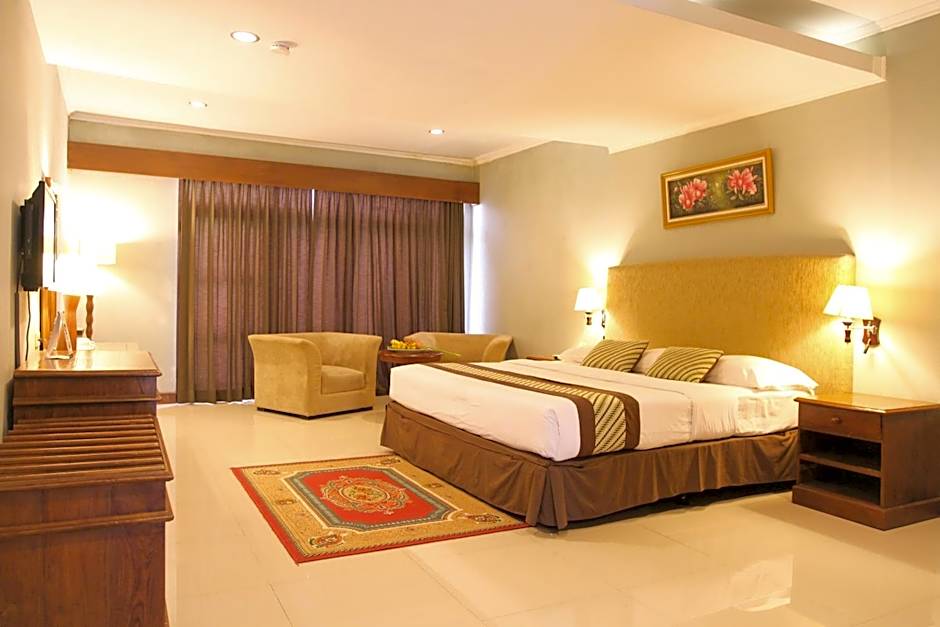 Rooms feature contemporary, Javanese furnishings and have air conditioning, cable TV, and a tea and coffee maker. Includes views over the lobby garden.