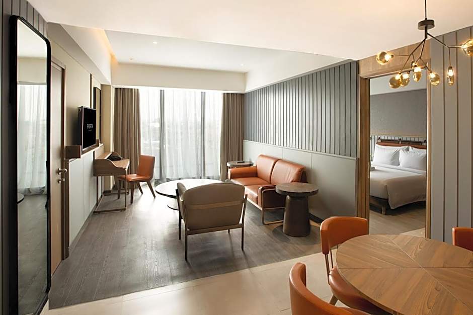 Situated in the Sleman district of Yogyakarta, PORTA by Ambarrukmo offers a sun-soaked escape above the city. The outdoor infinity pool sits atop the property, providing all-ages access and skyline views that shimmer as the sun sinks. It’s the kind of poolside moment that blends leisure with a dash of drama, perfect for punctuating days of exploring the area.