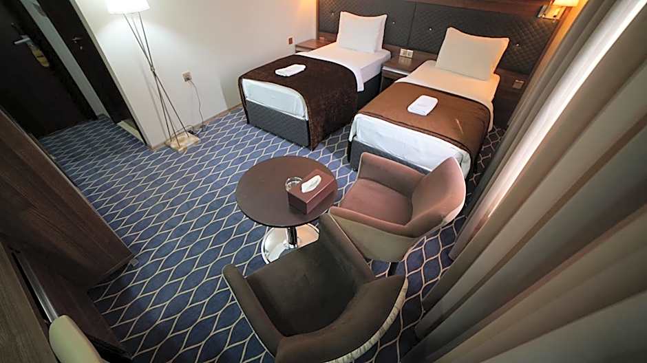 The hotel provides non-smoking rooms, air conditioning, an elevator, and 24-hour front desk service, all contributing to a convenient stay within a central Erbil location.