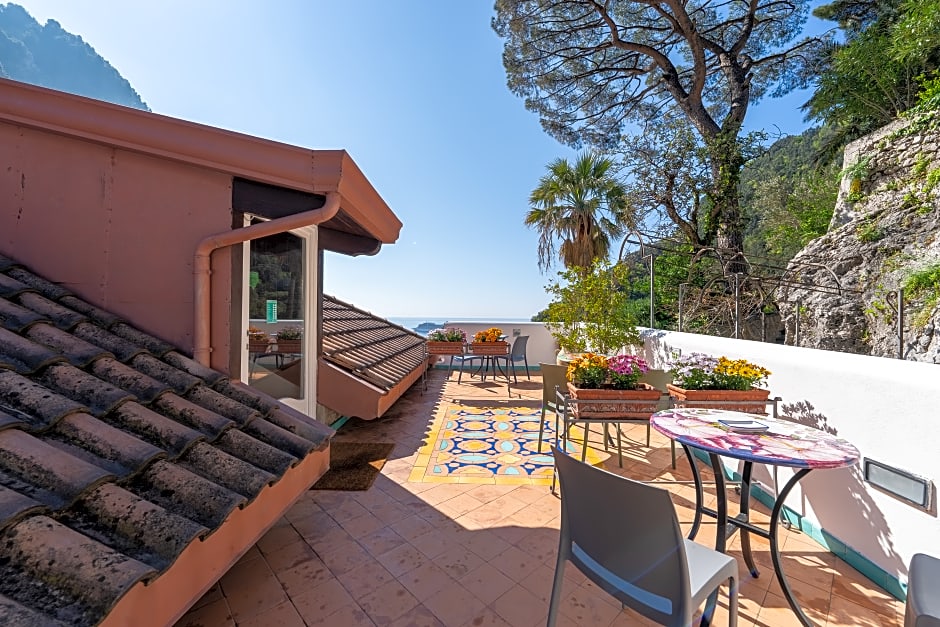 Private entrances, elevator, terrace, garden view, and landmark view complement a stay with access to a beach, making Amalfi adventures easy and memorable.