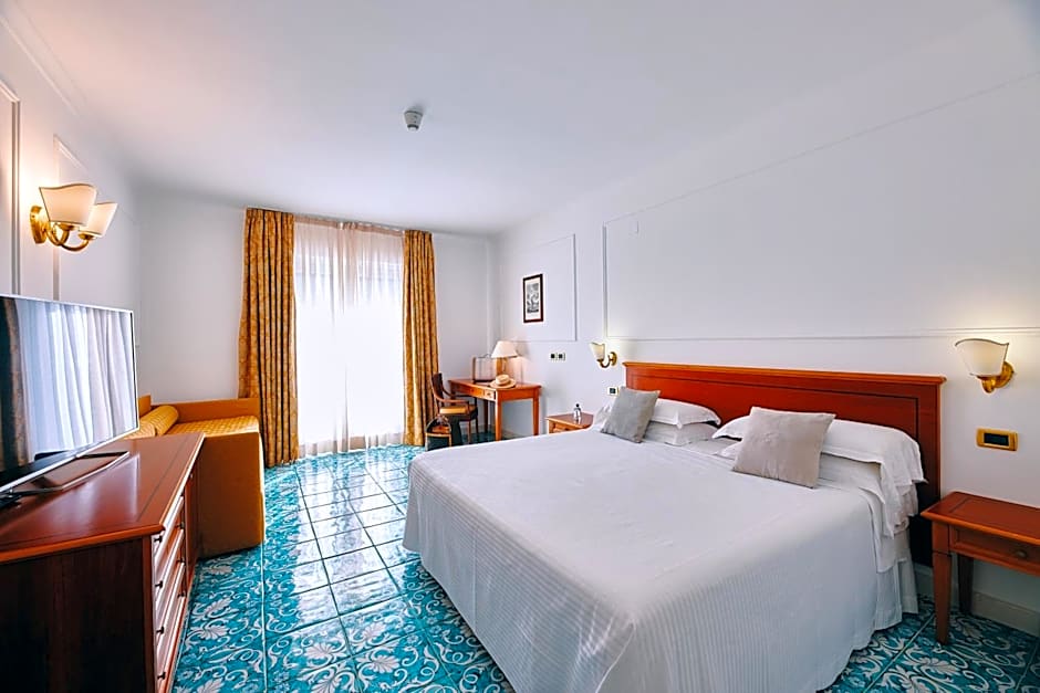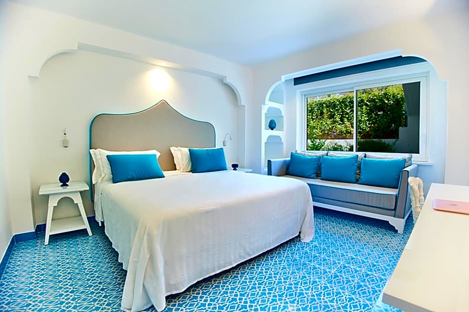 Offering extra space, this elegant room is located in a quiet part of the resort, surrounded by olive groves. It comes with a small terrace and a bathroom decorated with traditional Vietri ceramic tiles.