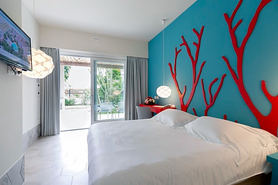 At Baia Del Sole, adventure awaits just outside your door! Dive into the clear azure waters with some snorkeling, or challenge a friend to a match on the tennis court. The kids will be entertained all day long at the complimentary kids' club, giving parents a chance to unwind at the bar or hot tub. The on-site restaurant tempts your taste buds with delicious meals, and don’t forget to start your day right with the delightful breakfast each morning. Plus, with amenities like free WiFi, a fitness center, and even live music performances, you'll find your ideal blend of relaxation and recreation.