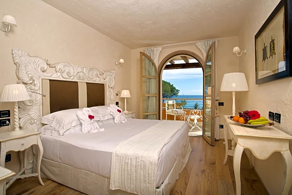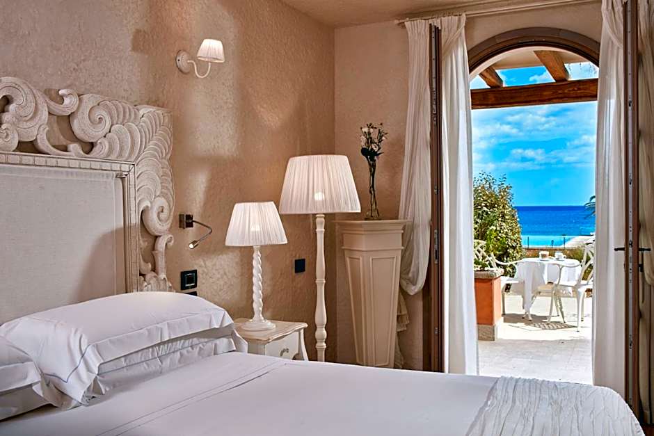 Room choices range from suites with sea views to deluxe and standard options, many with sea-view or beachfront locations. Options include Suite, Sea View; Superior Room, Queen Bed, Sea View; Deluxe Room, Sea View; Standard Room, Queen Bed; Junior Suite, Beachfront, and other variations, all non-smoking. The property sits along Loc. Su Cannisoni in Castiadas, about 3.7mi from the city center, offering a beachfront haven for travelers seeking sun, sea and refined comfort.
