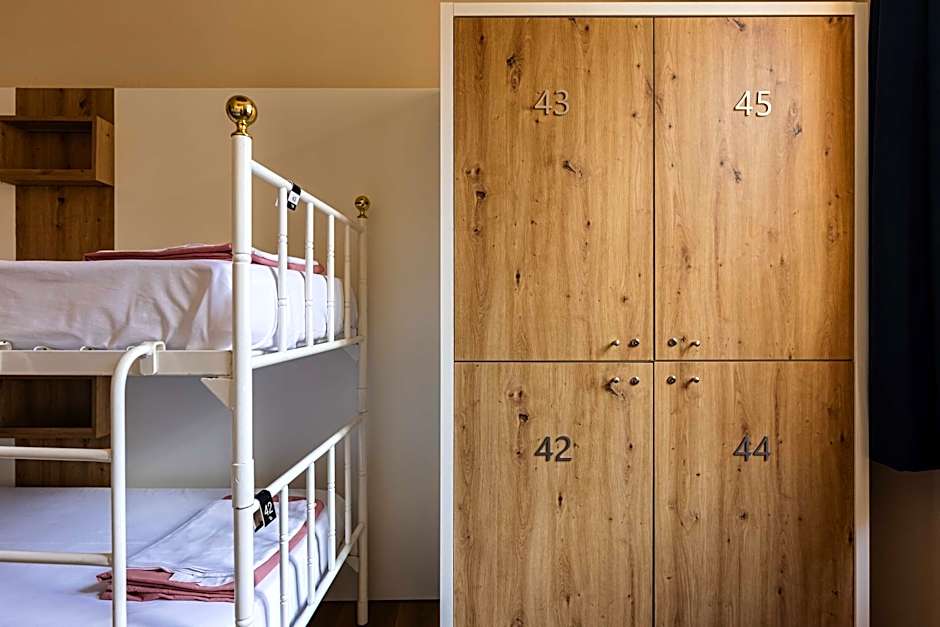 Bed in a dormitory equipped with free Wi-Fi and individual lockers. The shared bathroom is located inside the dormitory.