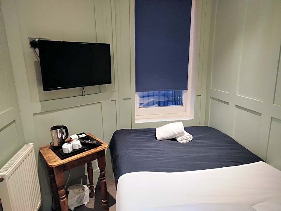 The room has a mini-fridge too.