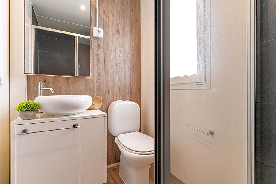Featuring a private entrance, this air-conditioned mobile home is comprised of 1 living room, 2 separate bedrooms and 2 bathrooms with a shower and a bidet. Meals can be prepared in the kitchenette, which is fitted with a stovetop, a refrigerator, a dishwasher and kitchenware. Boasting a terrace with sea views, this mobile home also offers a seating area and a flat-screen TV with cable channels. The unit offers 3 beds.